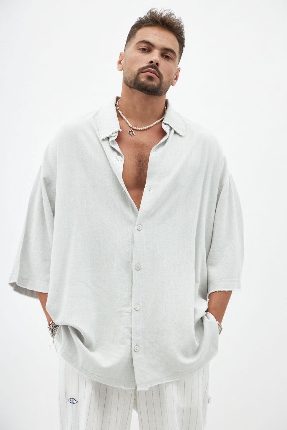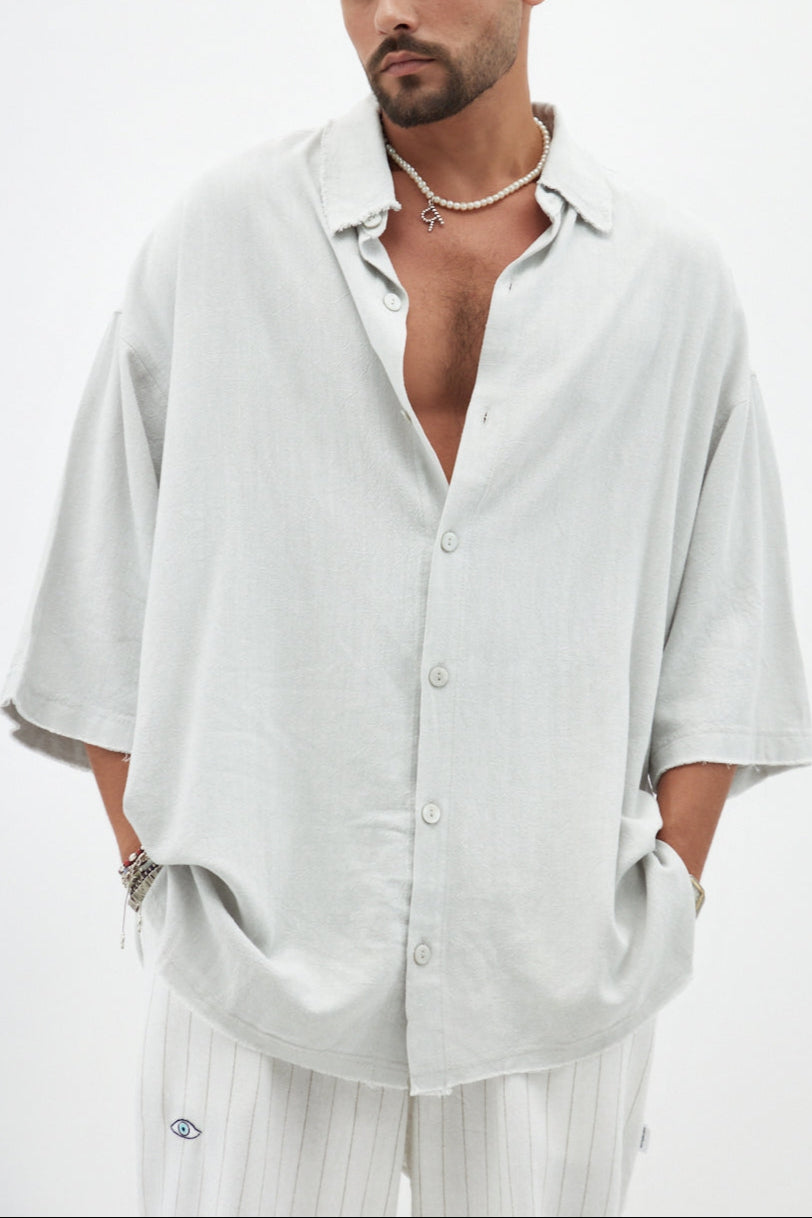 אפור אייס SOFT מכופתרת שרוול קצר פשתן
