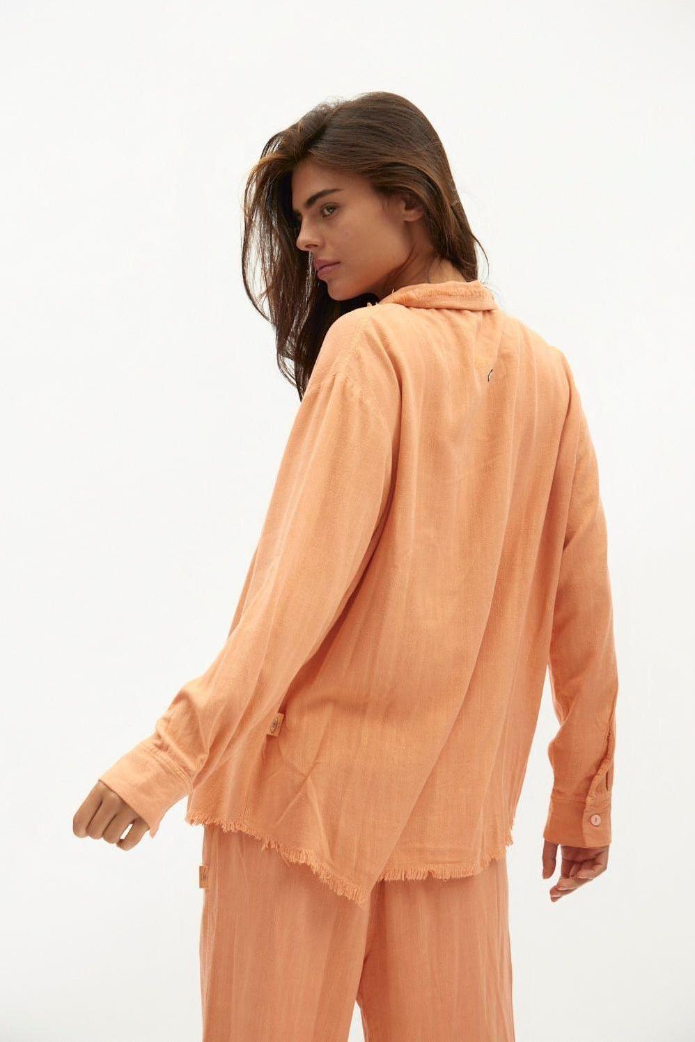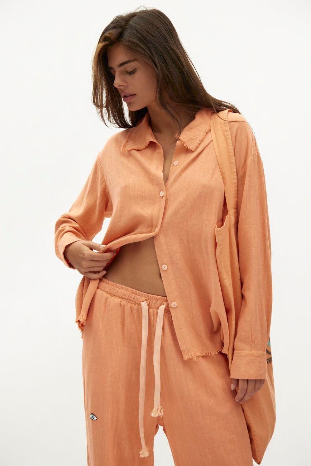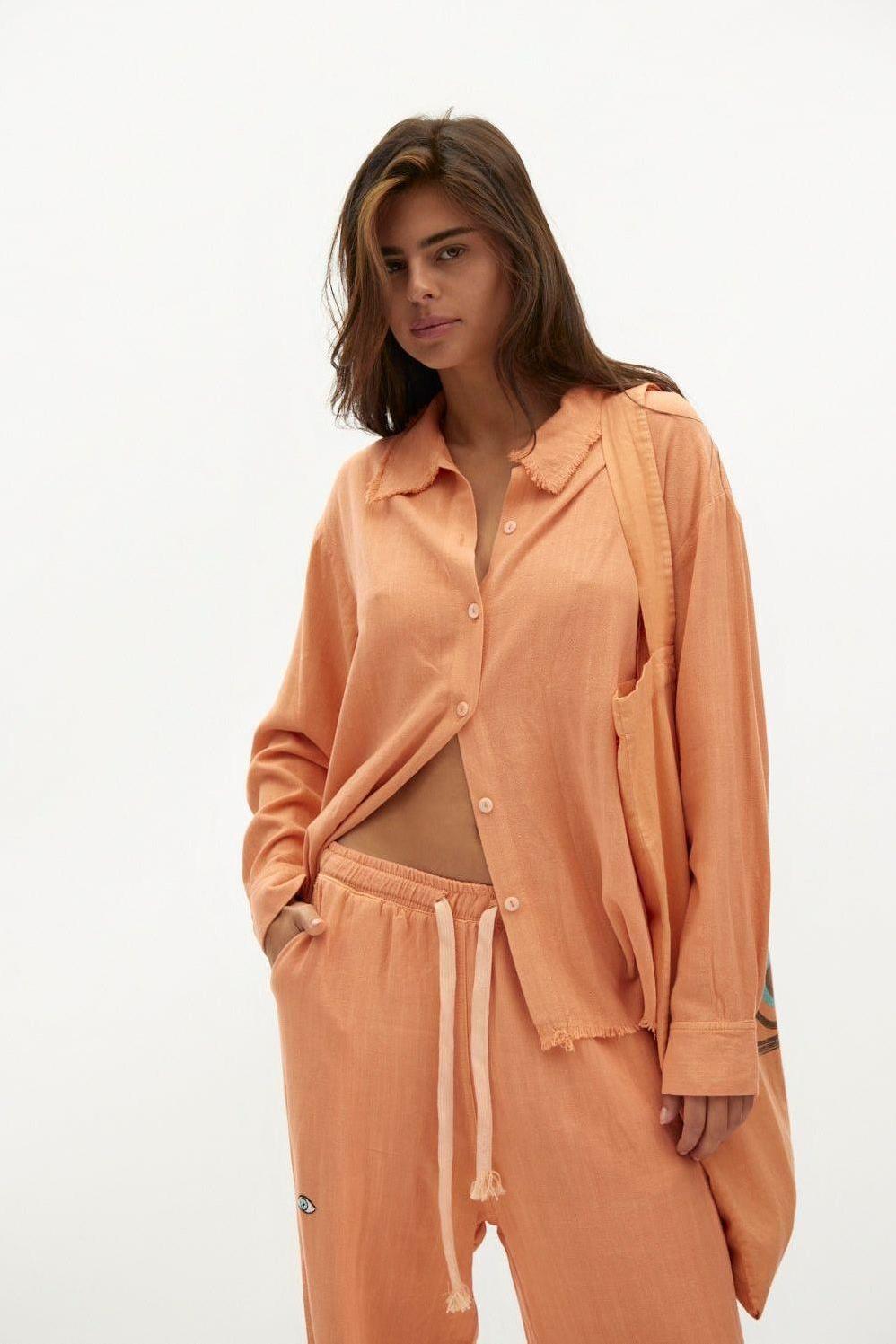 כתום SOFT מכופתרת פשתן נשים