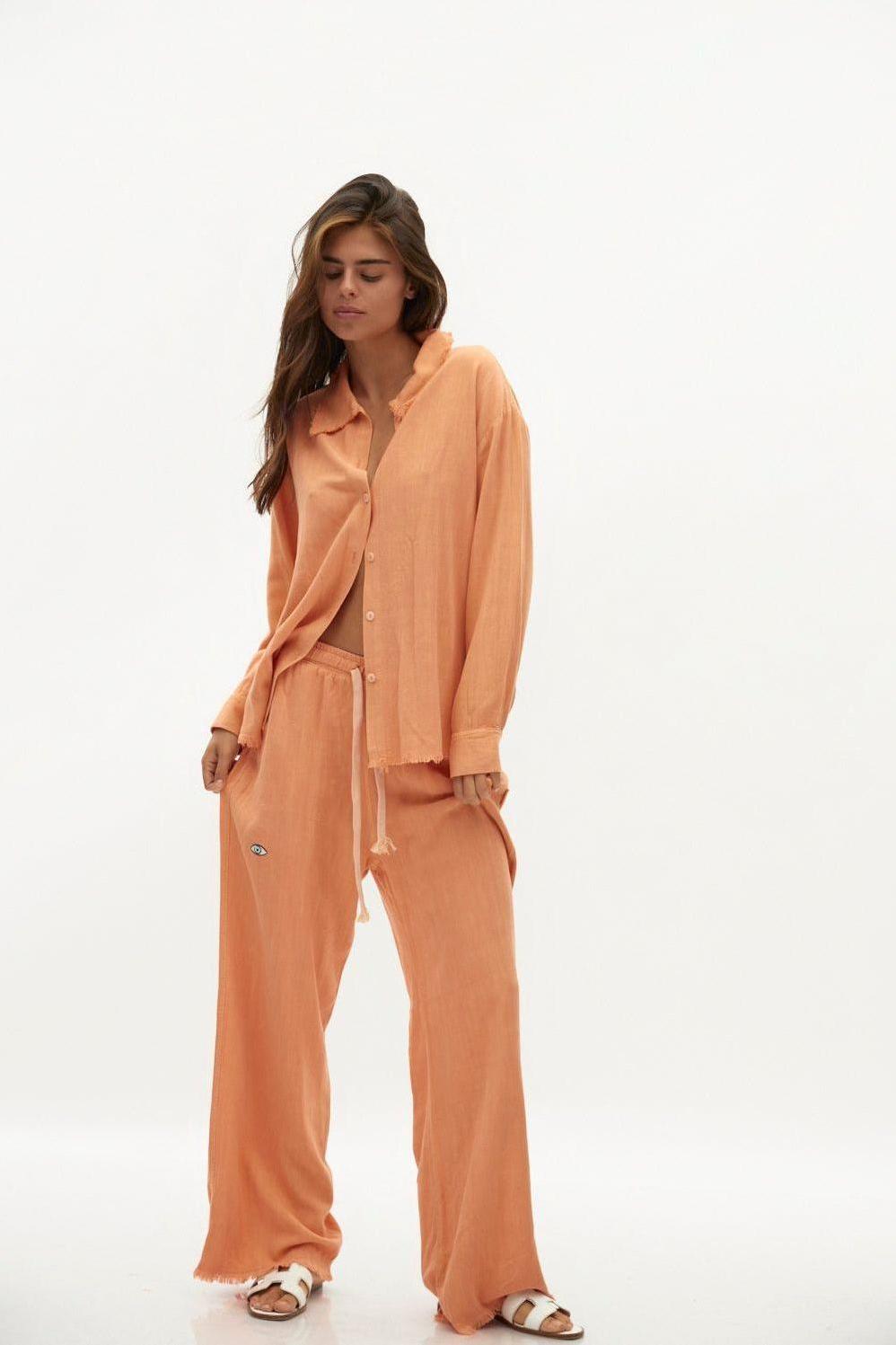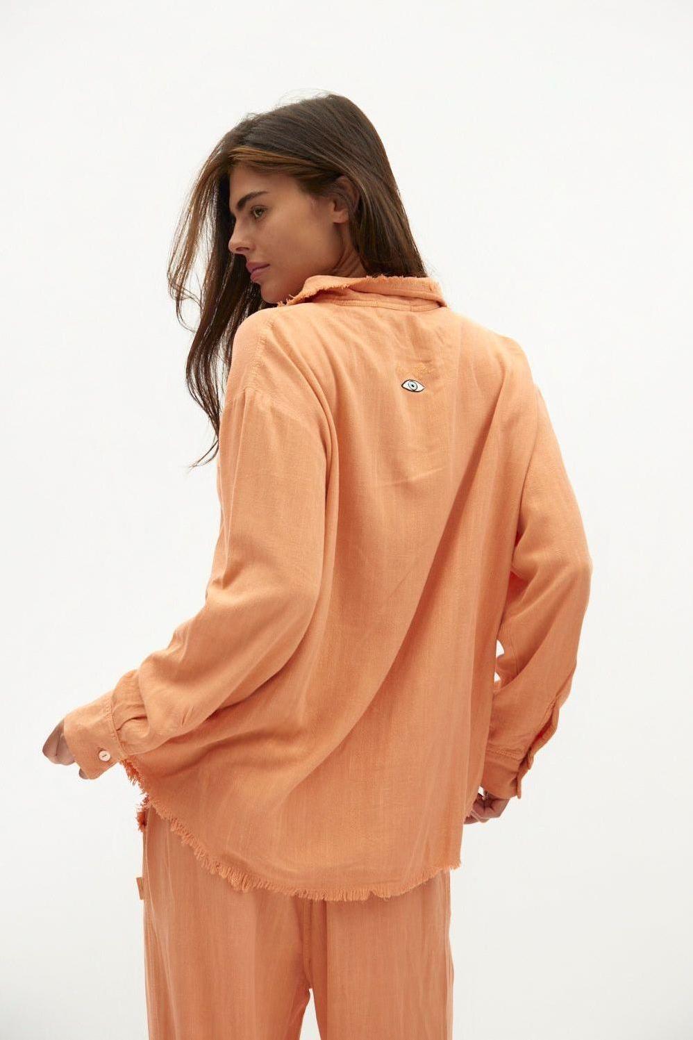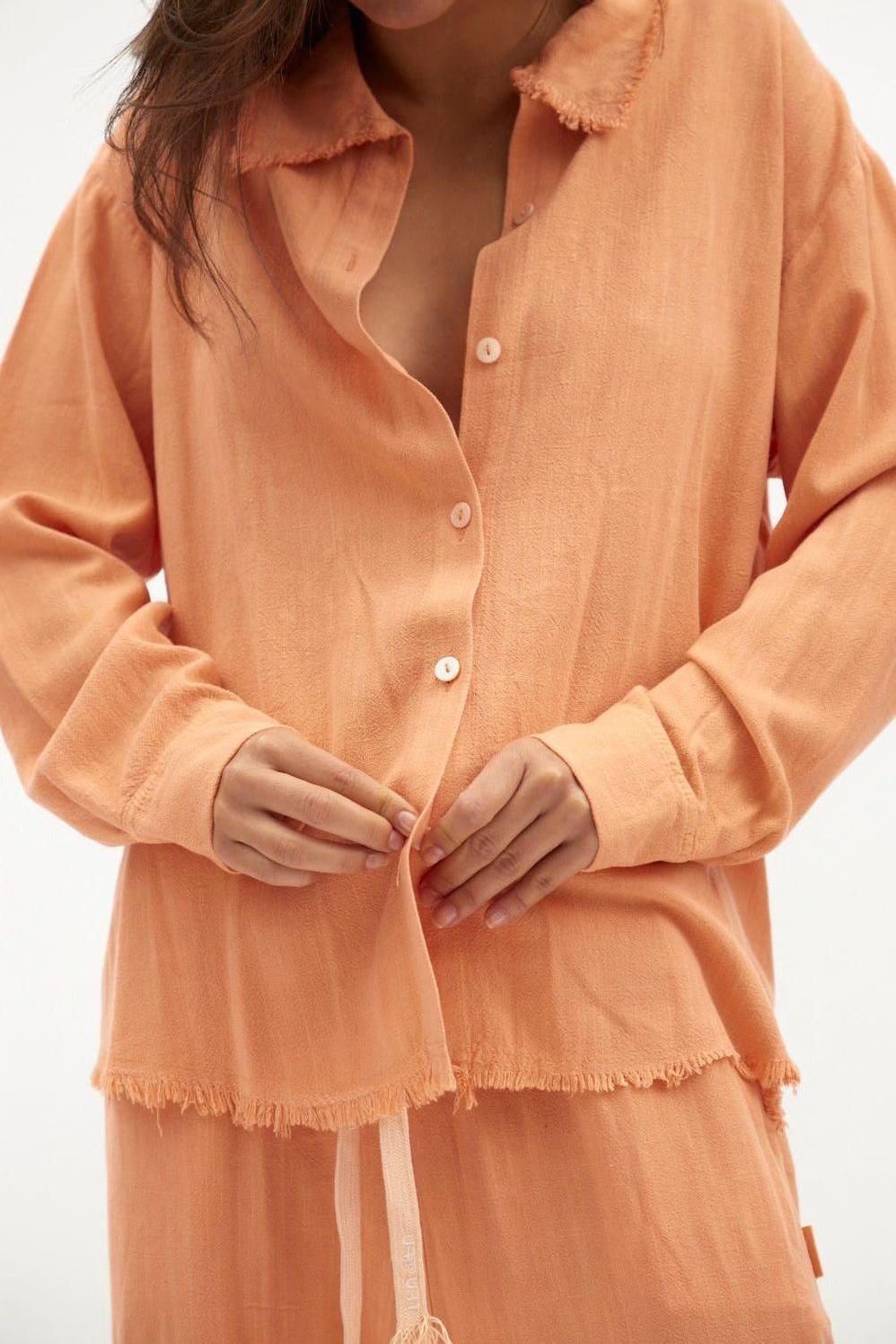 כתום SOFT מכופתרת פשתן נשים