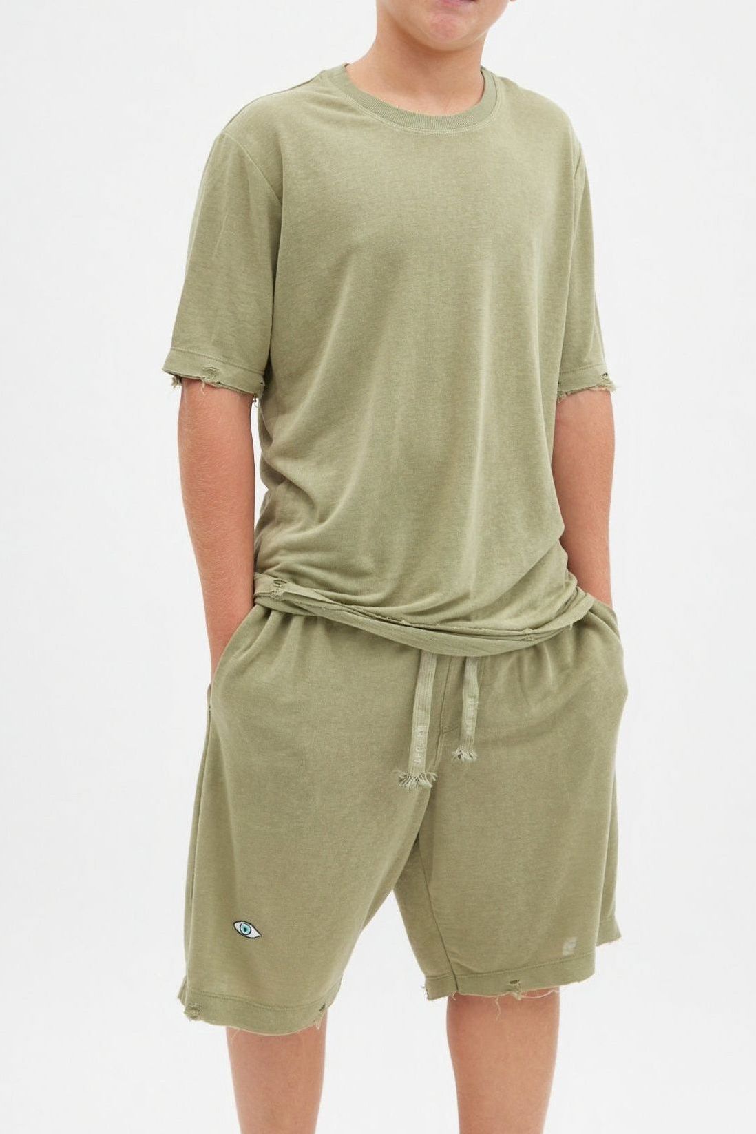 עשויה מבד רך במיוחד, גזרת ניקי במראה קרוע בשילוב הדפס עין בגב בשיטת צבעי מים ופגמנט אורגני.