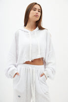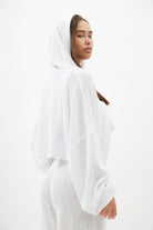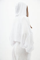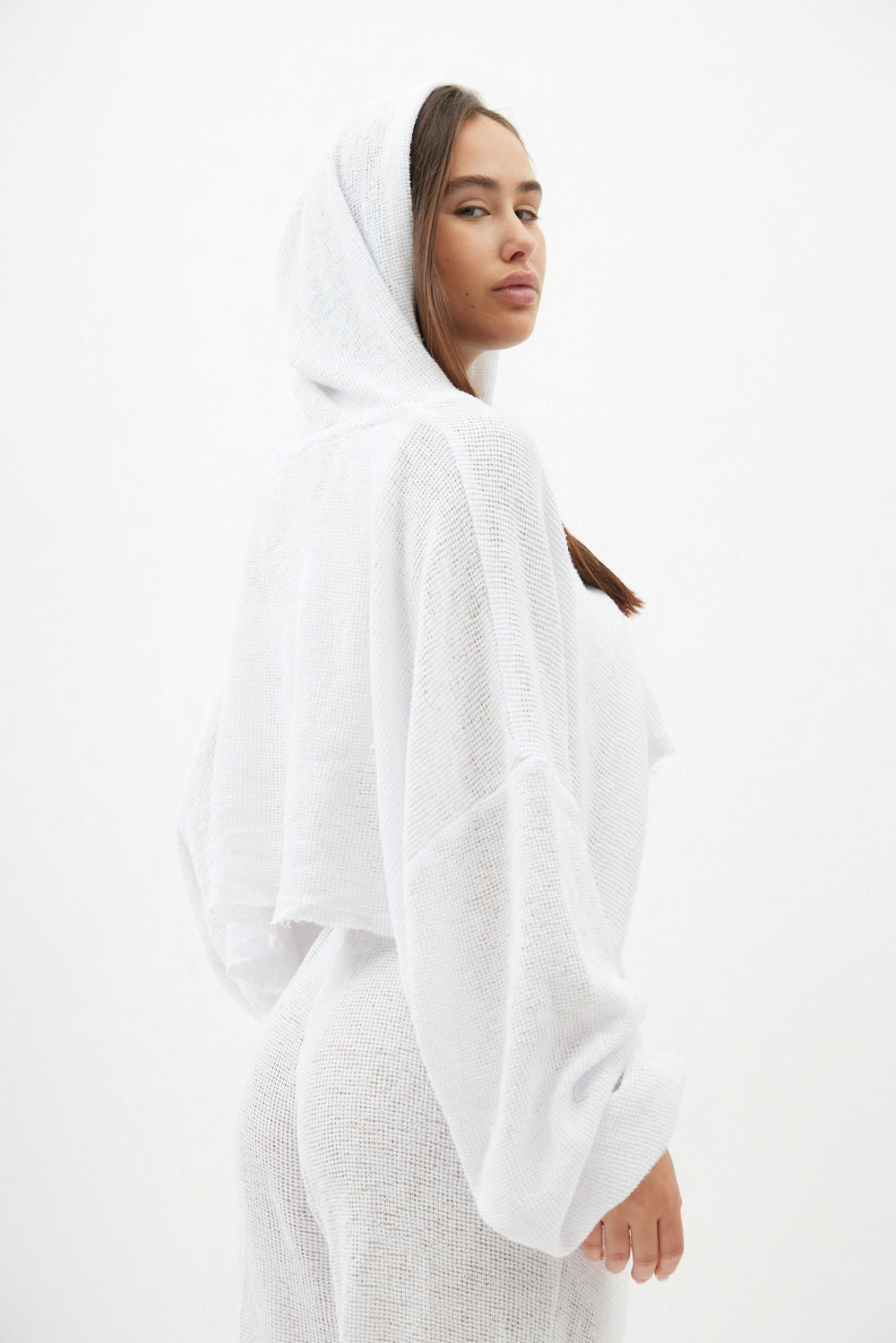 חולצת קרופ חשופת בטן עם כובע, שרוולים ארוכים