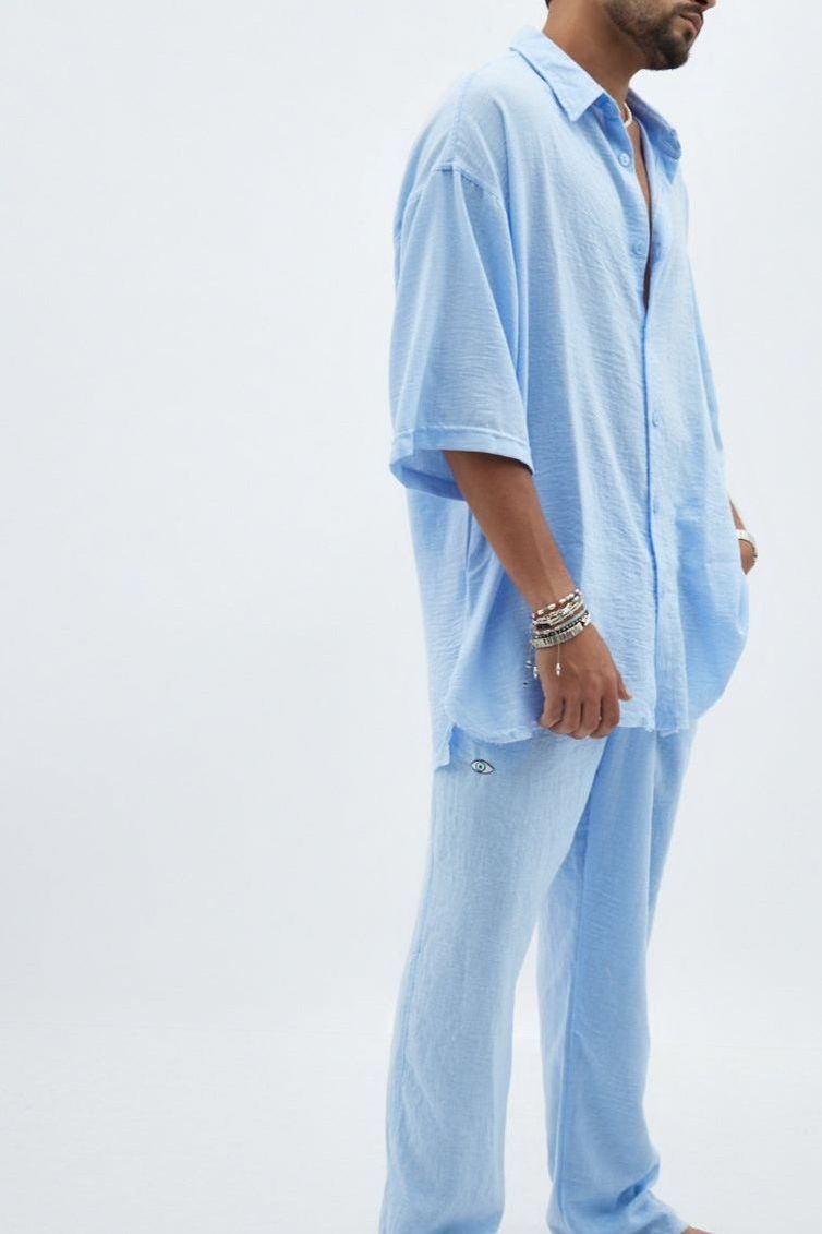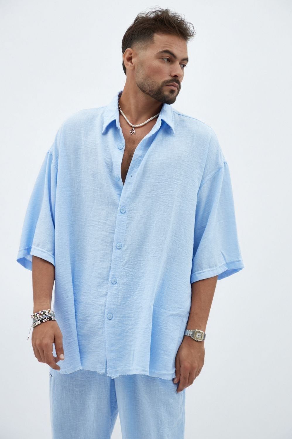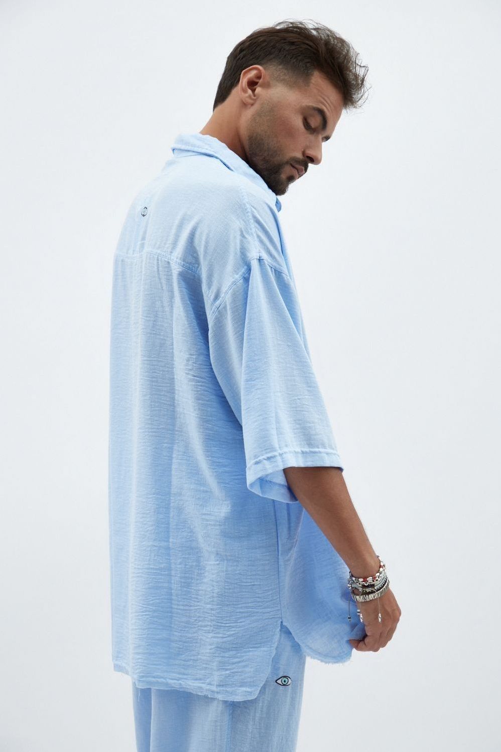 חולצה מכופתרת , שרוול קצר מבד משולב - נעימה ואוורירית