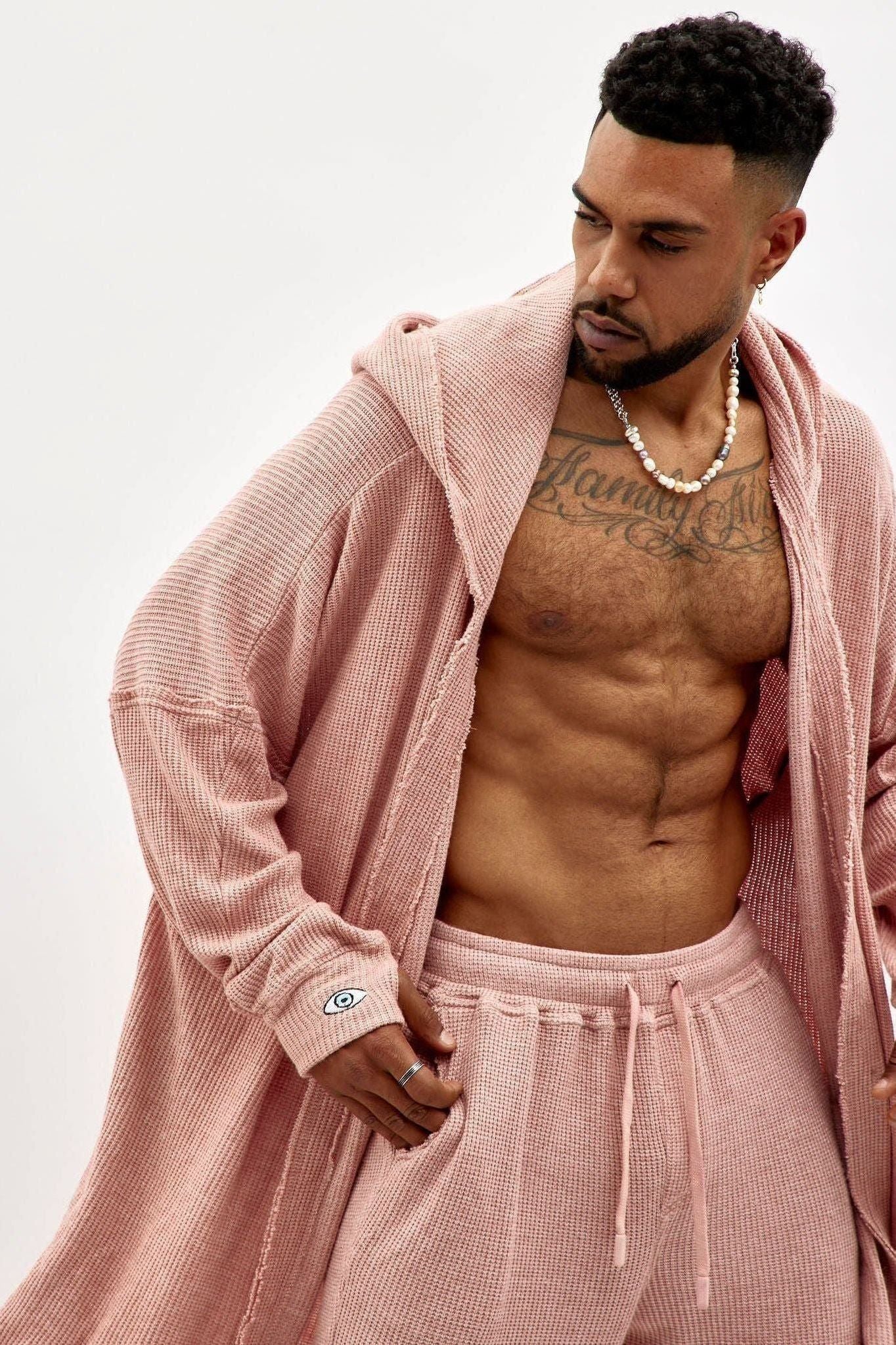 עליונית כובע סריג פתוחה במראה נשפך , שרוולים ארוכים וגימור גזור