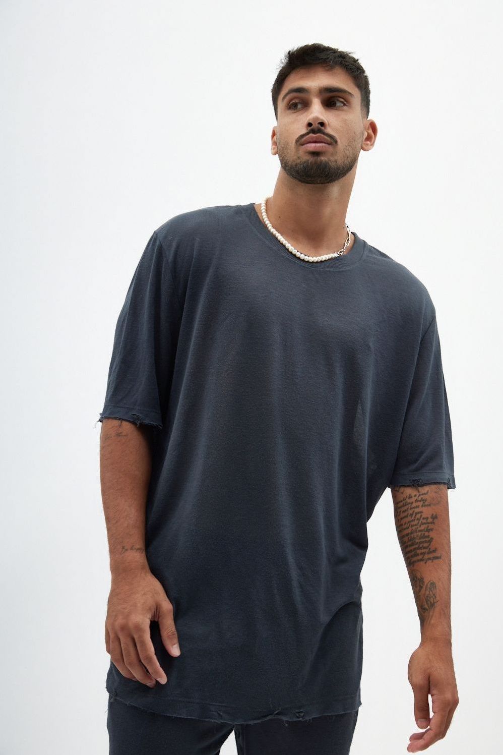 עשויה מבד רך במיוחד, גזרת ניקי במראה קרוע בשילוב רקמת עין בגב