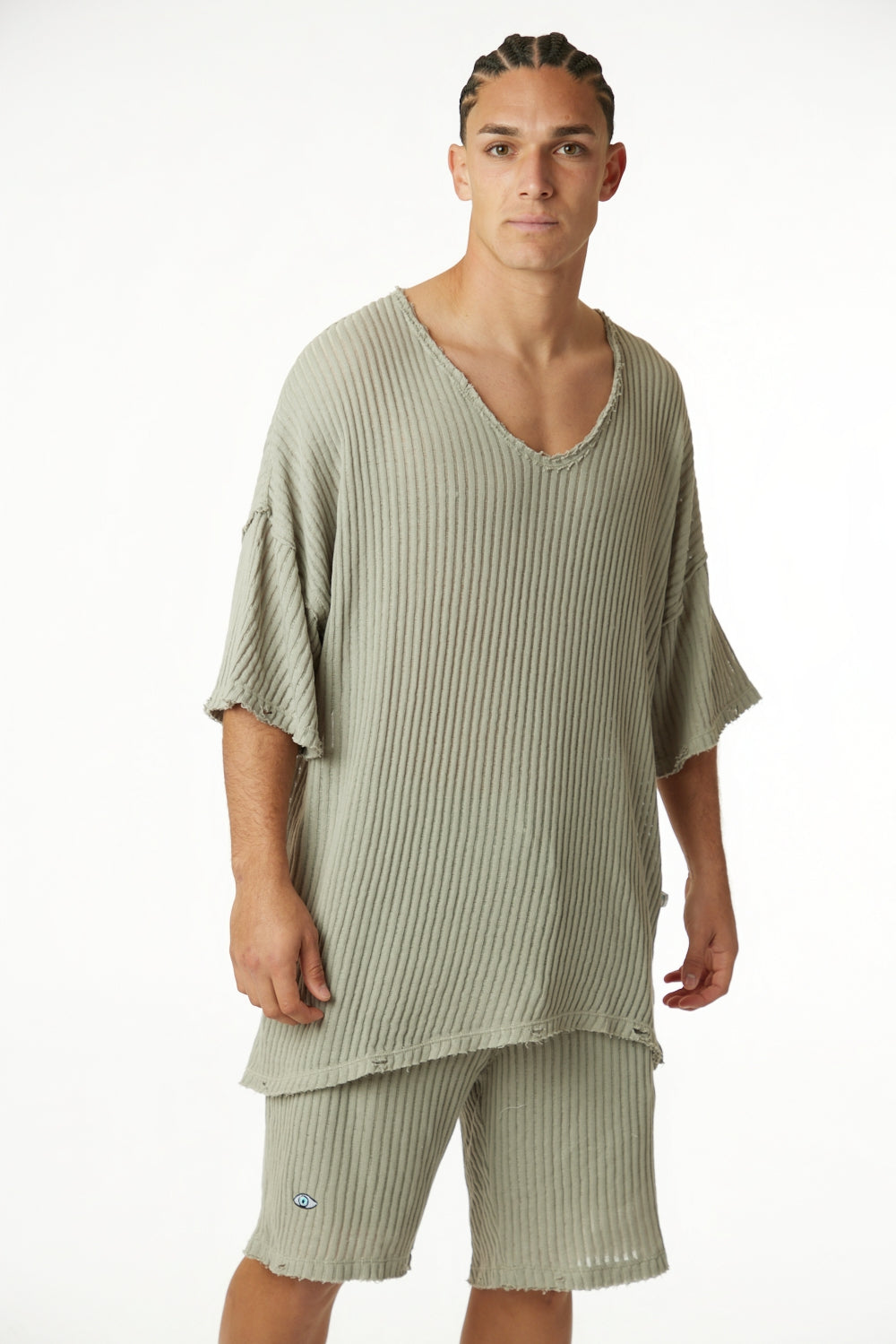חולצת סריג פסים זית