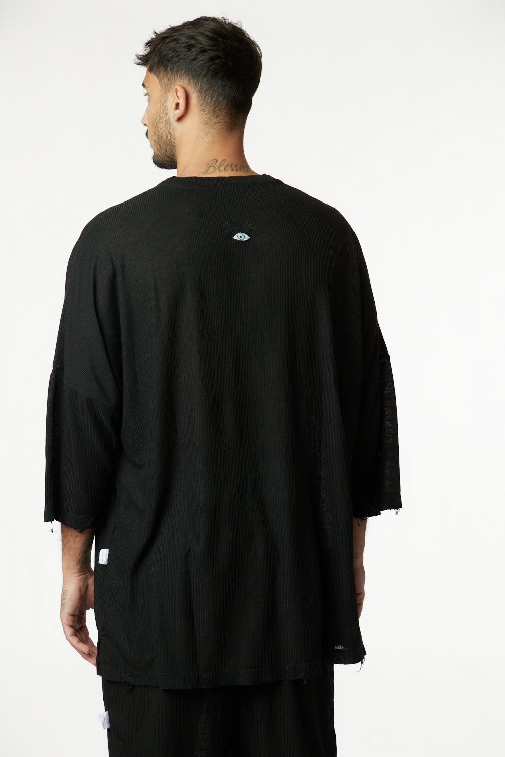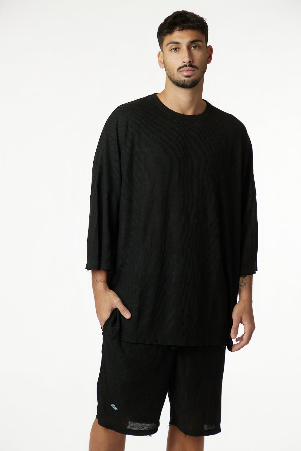חולצת גברים שרוול 3/4 מבד ריב , גזרת ניקי במראה לא גמור