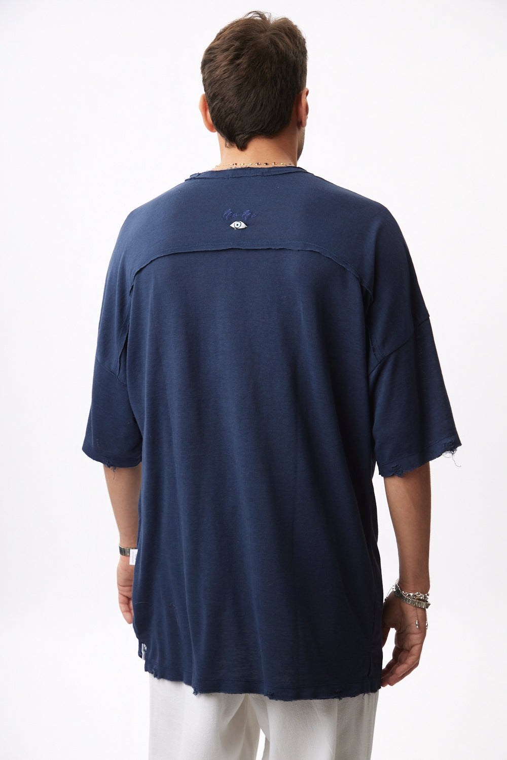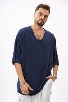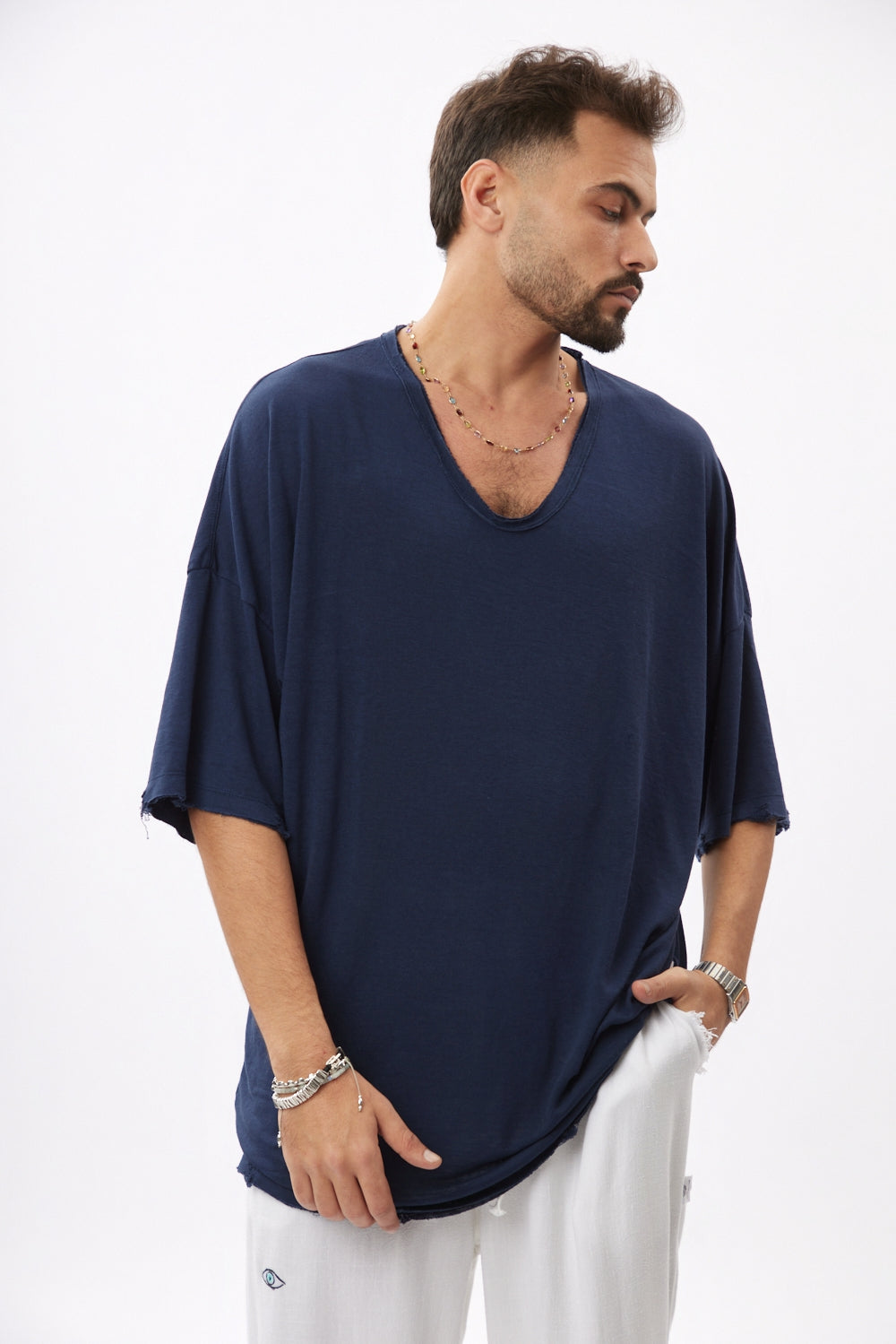 חולצה בגזרה רחבה, מראה משוחרר ומחשוף בצורת U