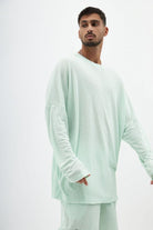 חולצת גברים שרוול ארוך מבד רך במיוחד, עשויה פשתן סרוג, גזרת ניקי במראה לא גמור