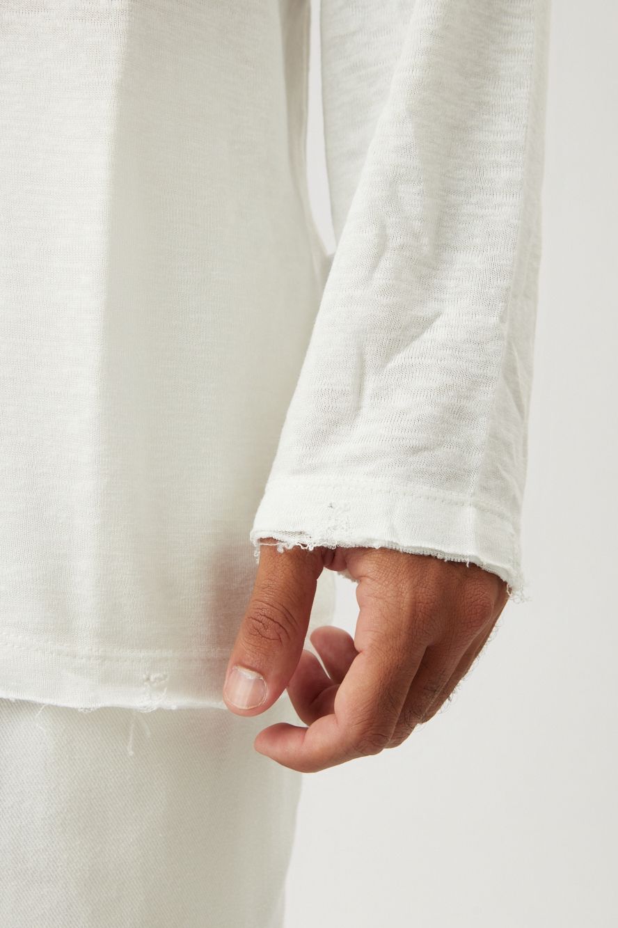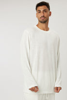 חולצת גברים שרוול ארוך מבד רך במיוחד, עשויה פשתן סרוג, גזרת ניקי במראה לא גמור