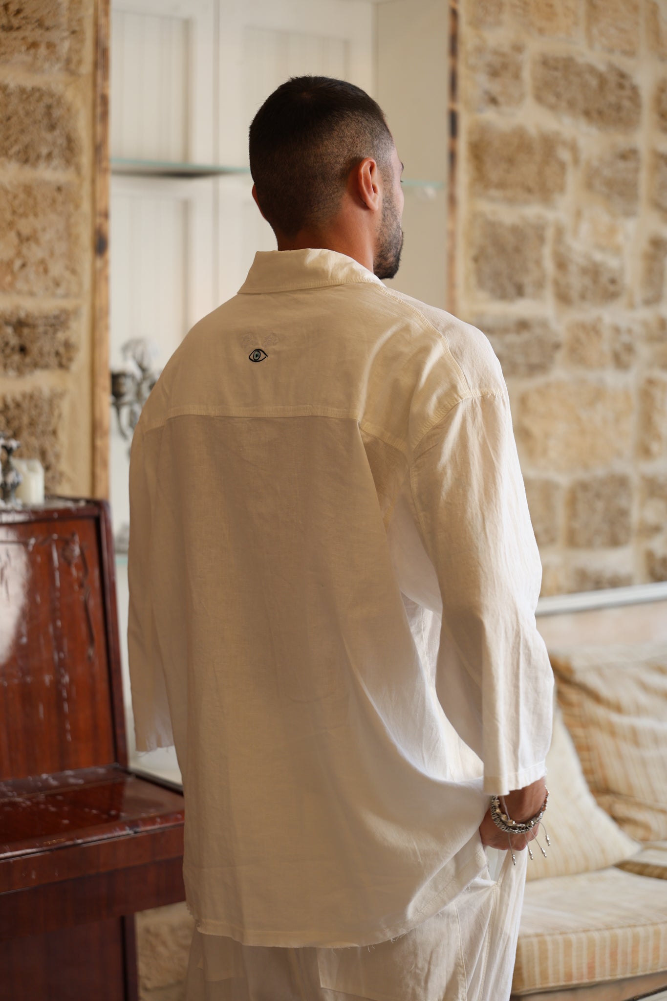 שרוול 3/4 לבן PURE מכופתרת פשתן