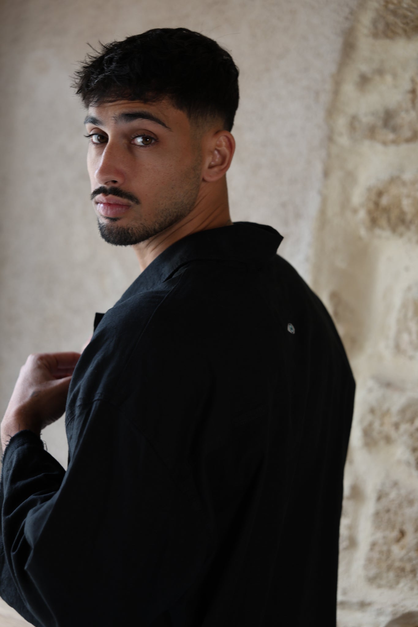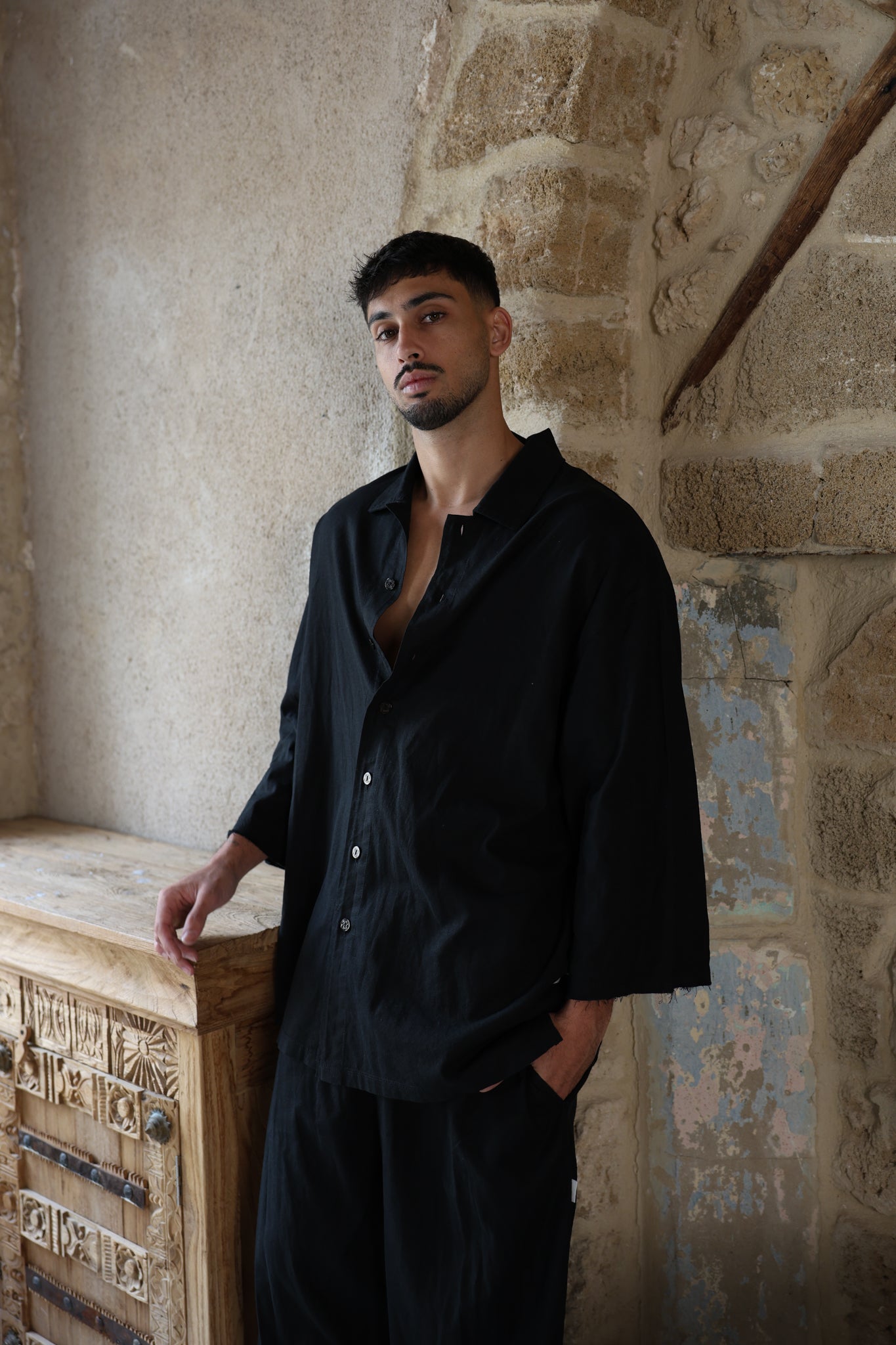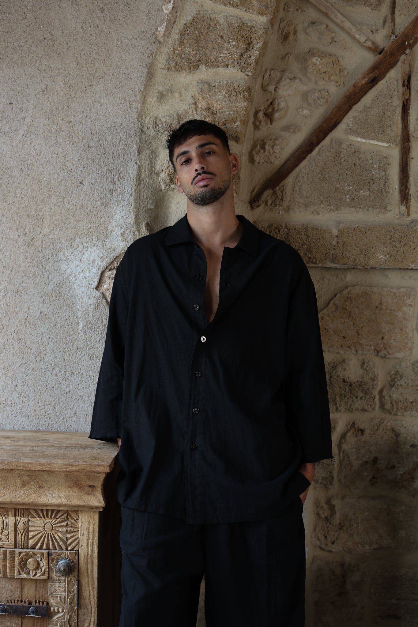 שרוול 3/4 שחור PURE מכופתרת פשתן