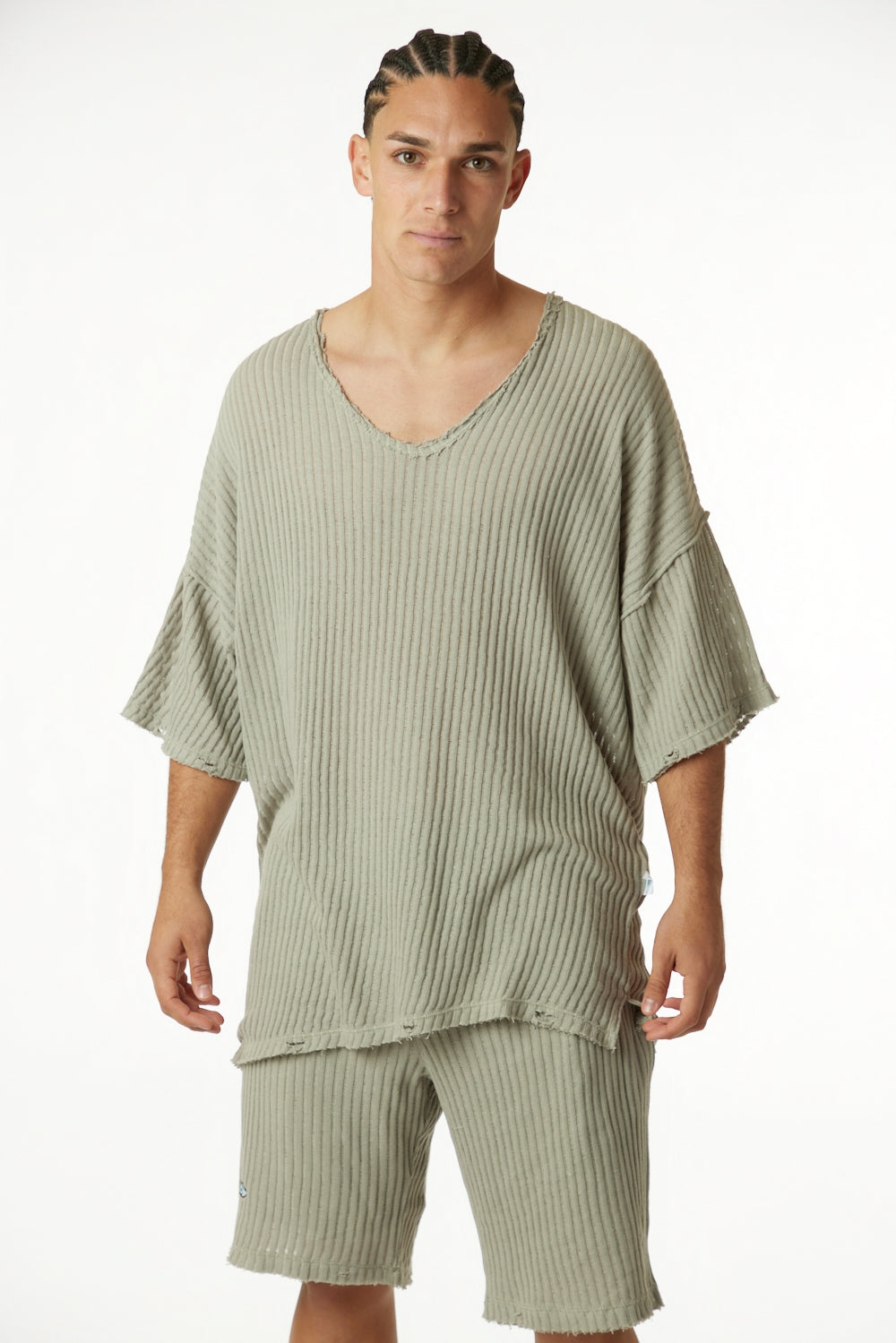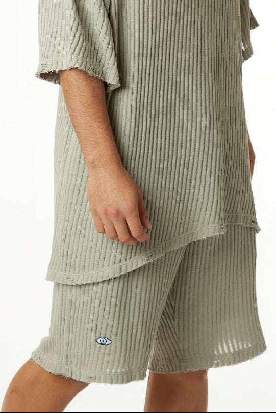 מכנס סריג פסים זית