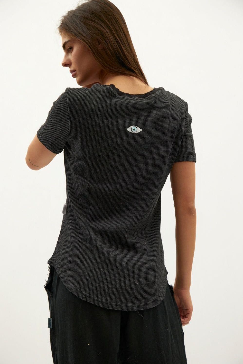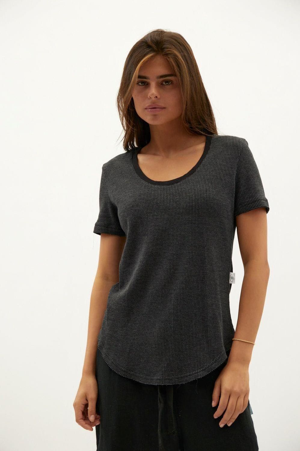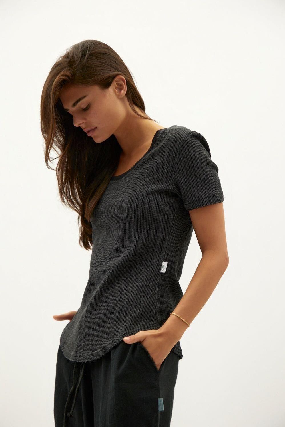 שרוול קצר אפור כהה U WAFFLE חולצת נשים