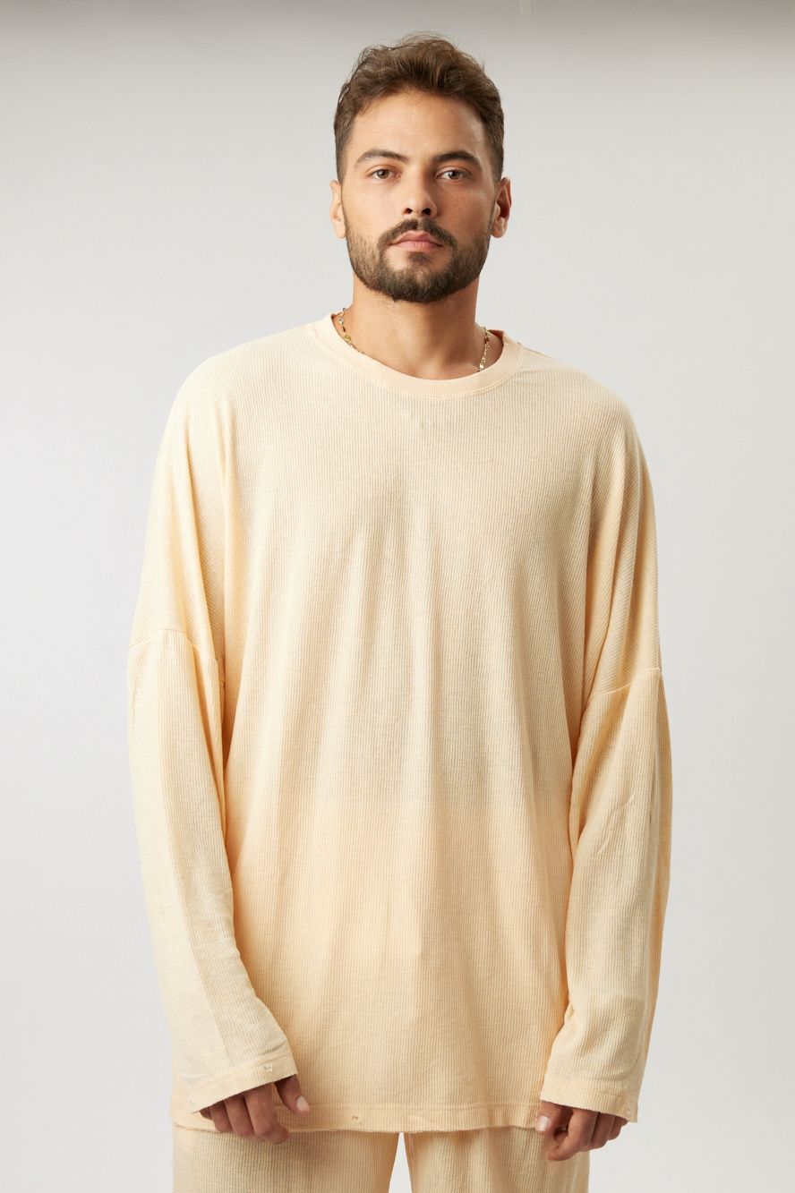 WHITE RIB OVER SIZE SHIRT