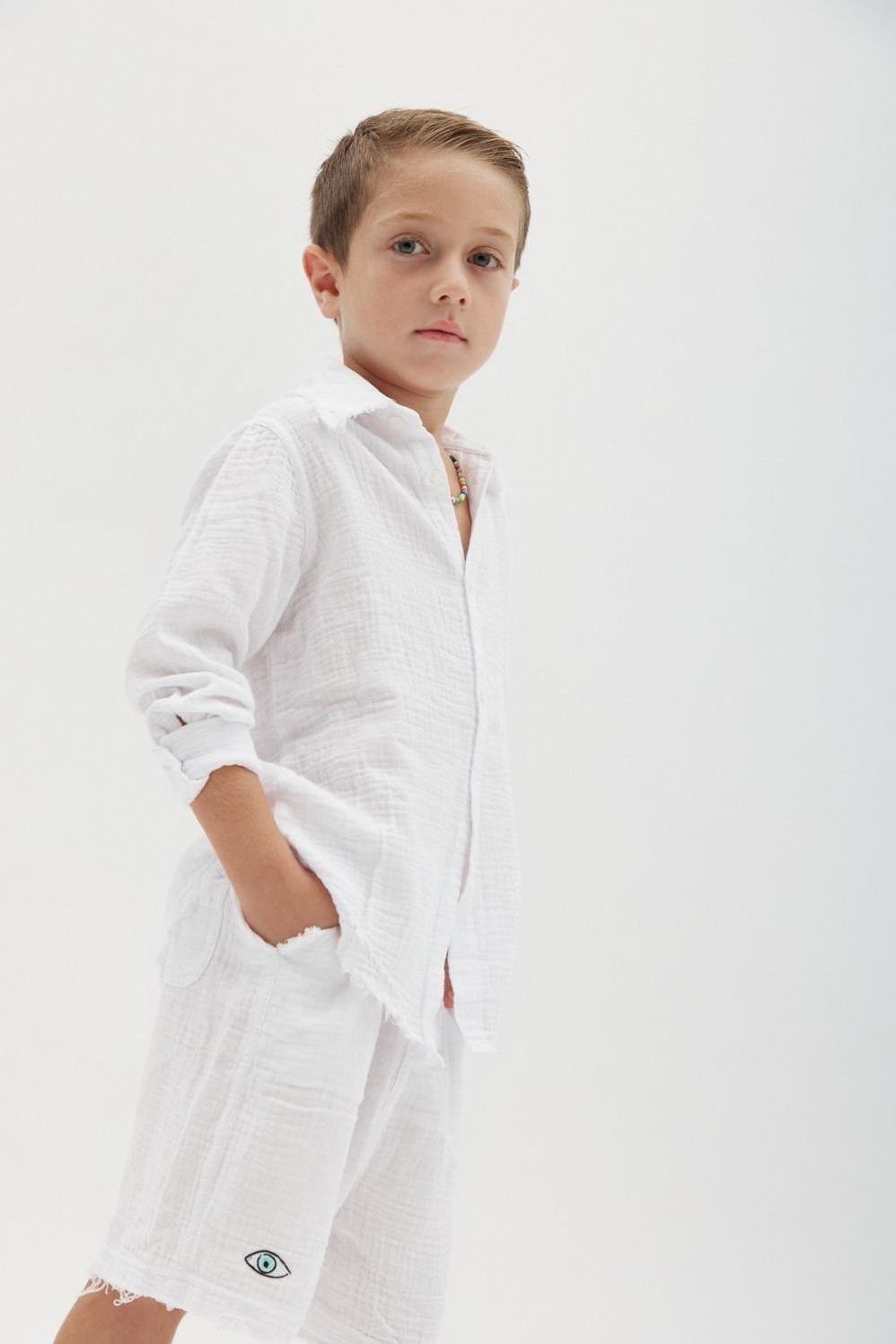 רקמת עין מעוטרת בגב החולצה ובחלקו הקדמי של המכנס