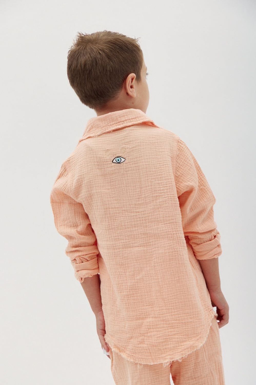 רקמת עין מעוטרת בגב החולצה ובחלקו הקדמי של המכנס