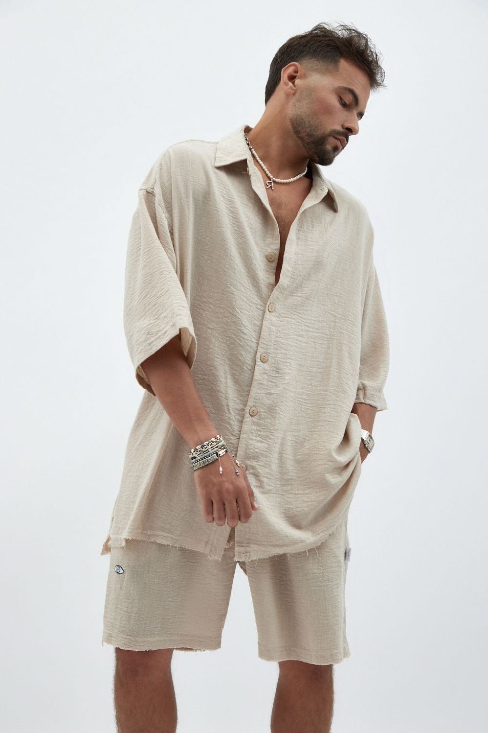 Our recommendation: combine with long or short pants made of matching fabric. Watercolor eye embroidery combined with organic pigment.