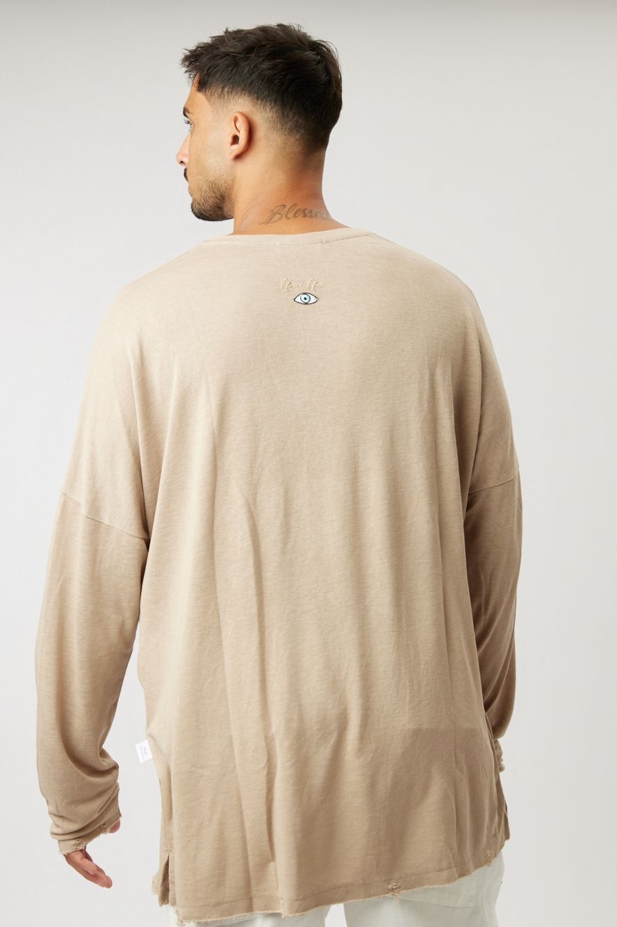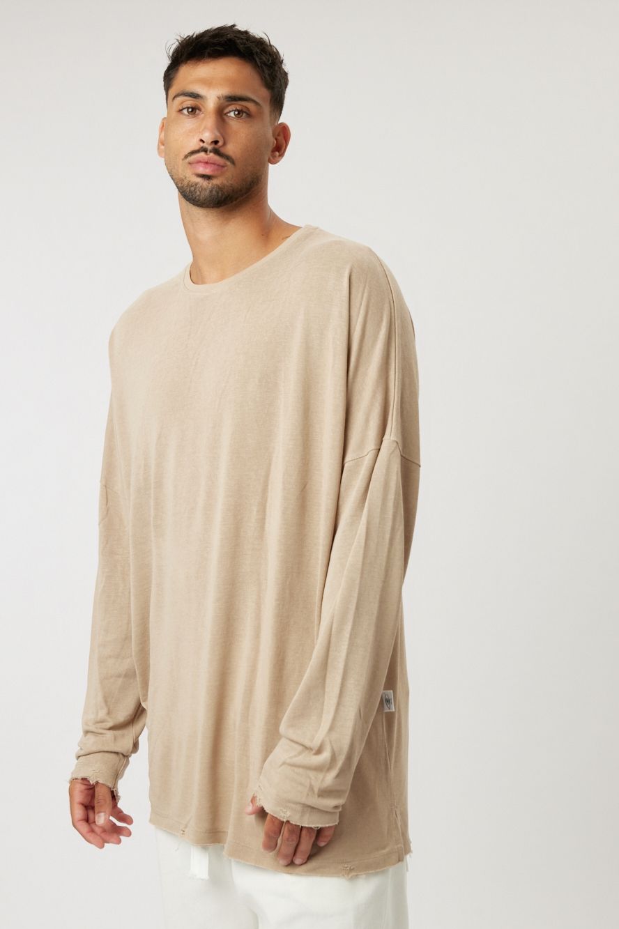 Oversized cut with an unfinished look