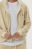 Zippered jacket made of lightweight, unfinished-look Potter fabric, large and loose, with cuffed finish at the bottom