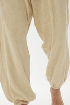 מכנסיים מבד מגבת עשויים 100% כותנה , רקמת עין בחלקו הקדמי של המכנס, גומי במותן, שרוך ממותג מושחל