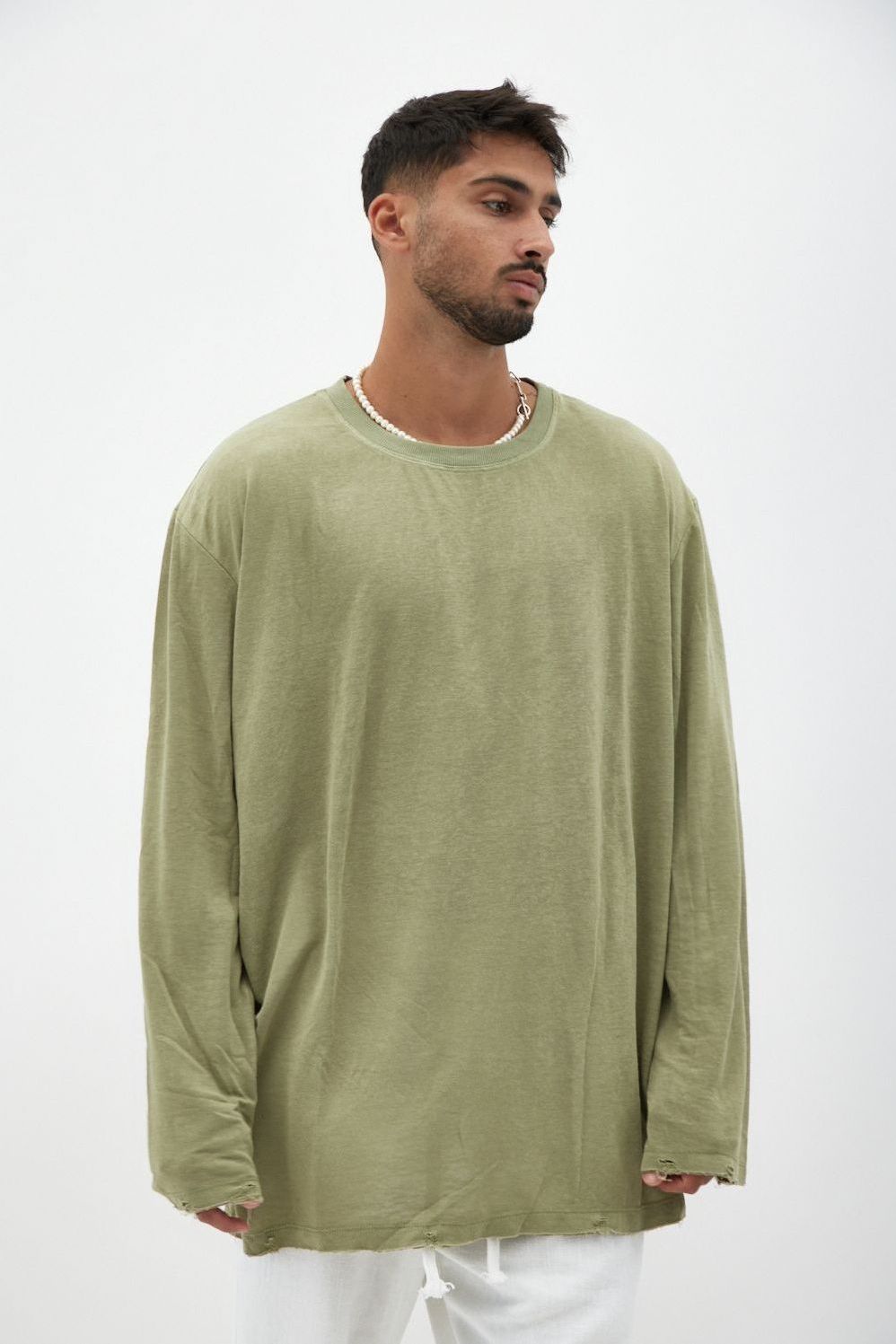 Men's long-sleeved shirt made of ultra-soft fabric, made of knitted linen, Nikki cut with an unfinished look