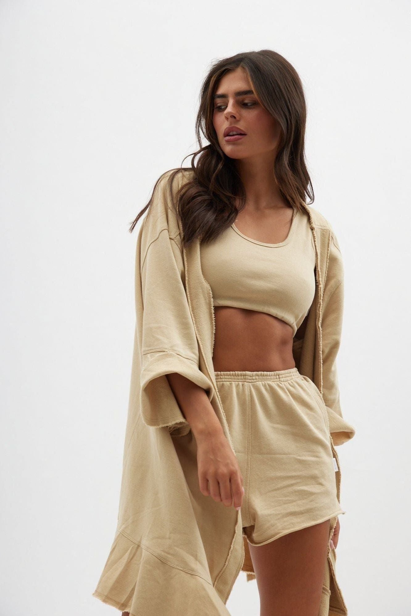 שורט במראה קצרצר עשוי בד פוטר קל  100% כותנה .