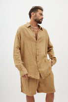 Soft linen button-down shirt, long sleeve